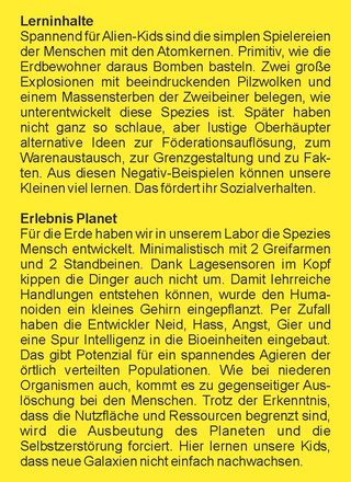 Sie lesen, dass die Dose Industrialisierung ideal für die vorschulische Bildung der kleinen Aliens geeignet ist.