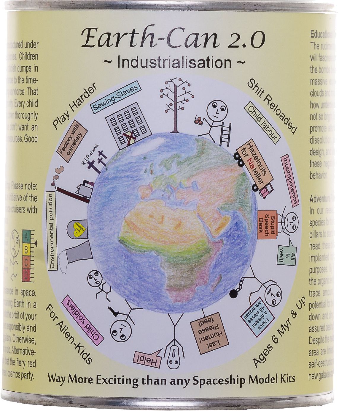 The cans show the three phases of the previous, current, and future evolution of the Earth.